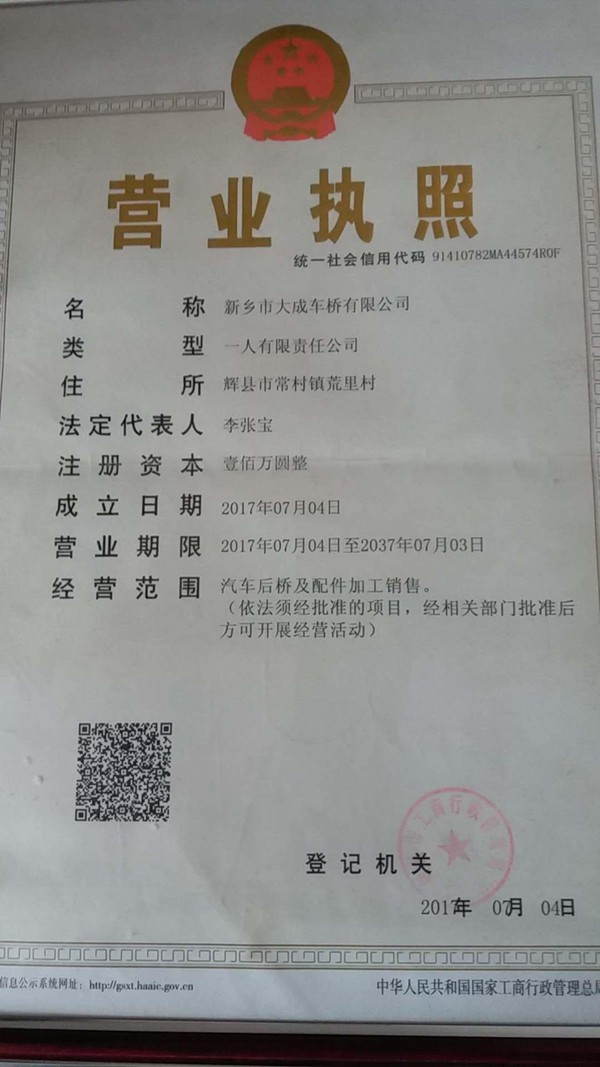 新乡市大成车桥有限公司位于新乡荒里工业园,北依太行,南邻黄河,紧邻306省道,交通便利,区位优势明显,连霍、济东、京港澳高速贯穿而过。专业从事汽车后桥,重汽后桥以及重型汽车后桥的生产和销售。 新乡市大成车桥有限公司集铸造、锻打、机加工为一体,结合生产工艺,完善的质量体系,雄厚的技术力量,诚信的营销原则加紧了公司发展,本公司主要生产汽车后桥、重汽后桥、工程车桥、后桥壳、车桥平衡架、铸钢桥等系列产品。多年来公司坚持质优价廉的经营模式,以专业的产品质量和业务能力,立足于市场,赢得了客户的好评。主要产品有汽车后桥,重汽后桥以及重型汽车后桥